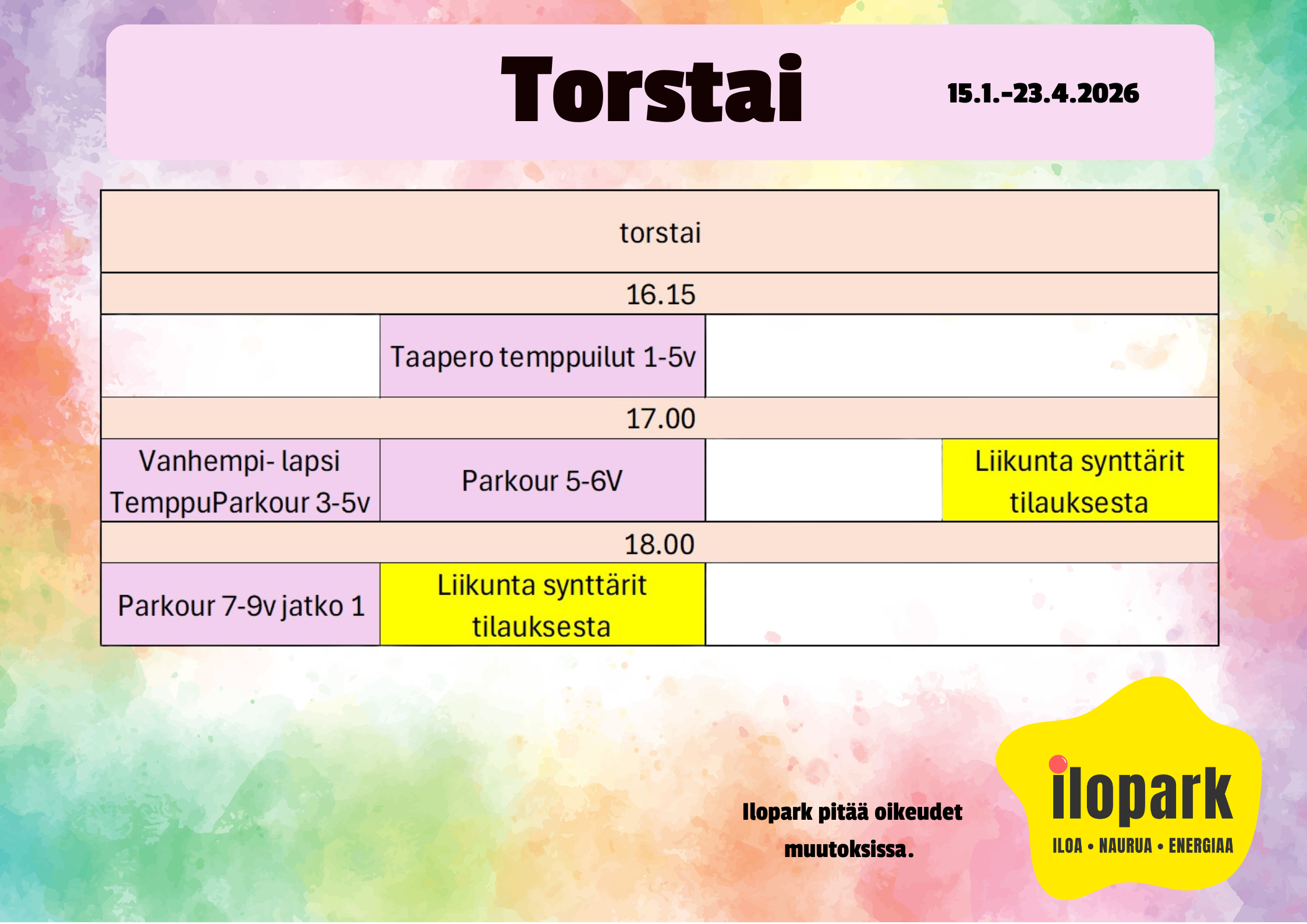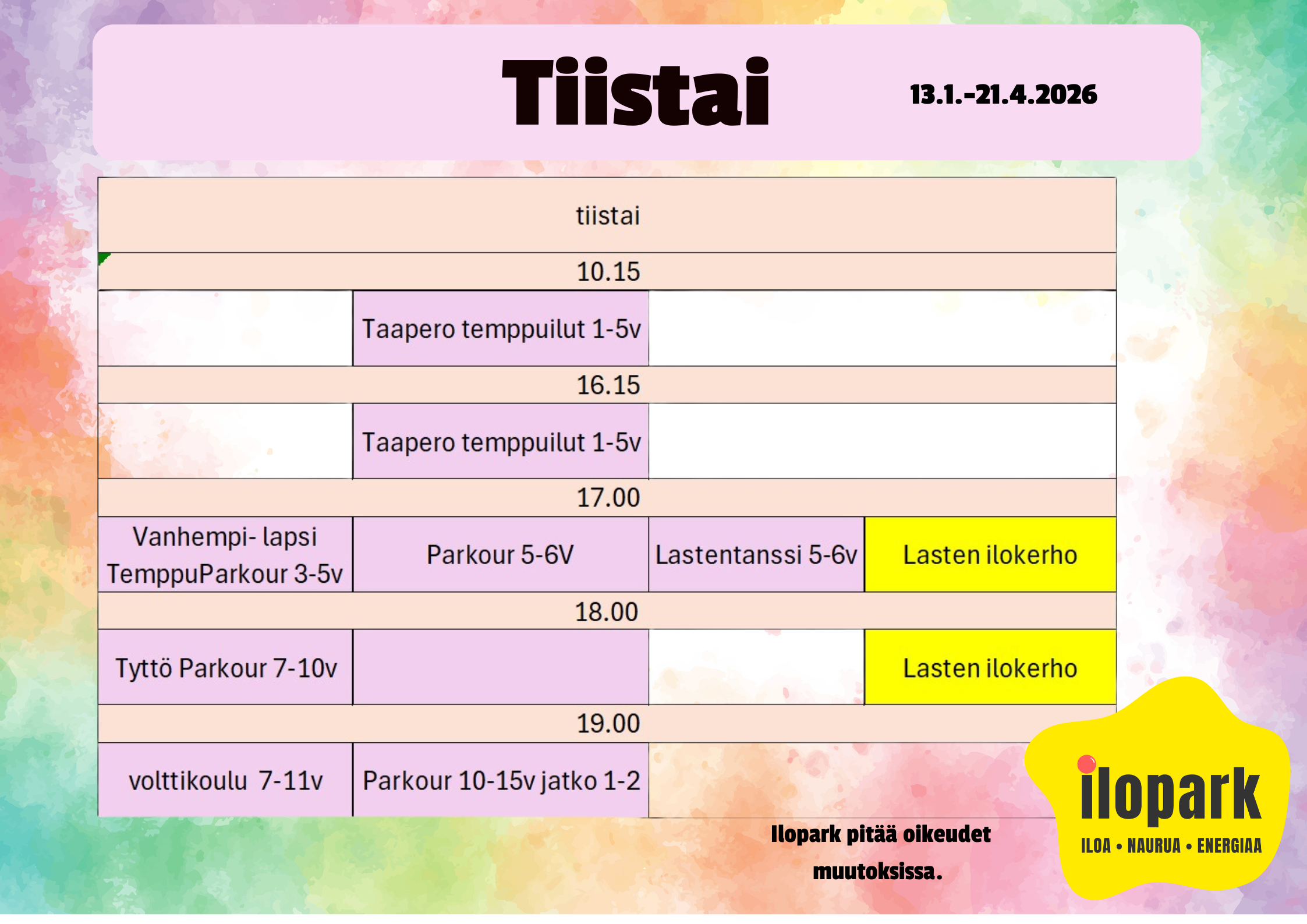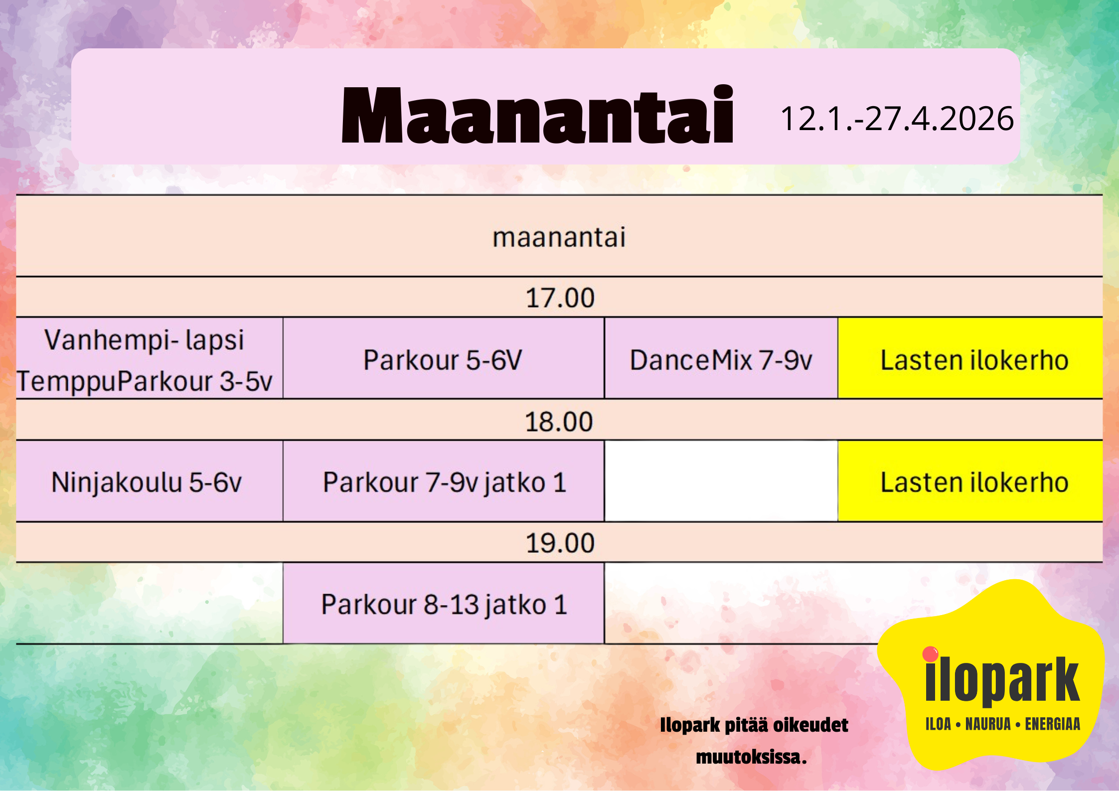 Ilopark™ tanssitunnit uudistuu ja valikoima laajentuu hurjasti!